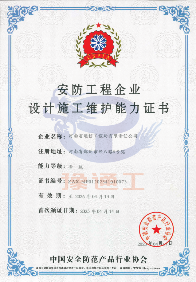 電子與智能化、建筑裝修裝飾、消防設施工程專業(yè)承包壹級;鋼結構工程專業(yè)承包貳級;建筑工程、電力工程、機電工程、城市及道路照明工程專業(yè)施工總承包叁級;施工勞務不分等級。